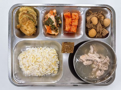 메뉴: 차조밥/닭곰탕/메추리알장조림/애호박전/야채초무침/깍두기/수제약밥