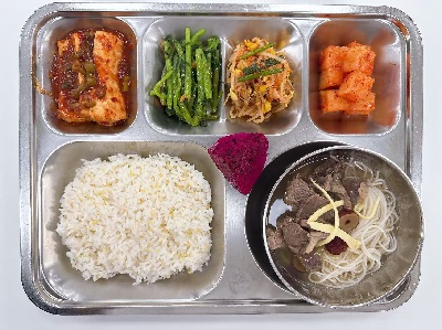 메뉴:차조밥/한방수육곰탕&소면/양념두부조림/콩나물무침/쑥갓무침/깍두기/계절과일