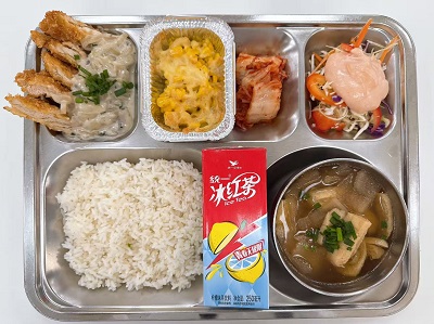 메뉴:찹쌀밥/쯔유장국/까르보치킨까스/양배추샐러드/오븐콘치즈/배추김치/음료수