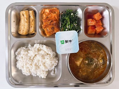 메뉴:흑미밥/등뼈감자탕/해물김치전/두부조림/시금치무침/깍두기/요거트