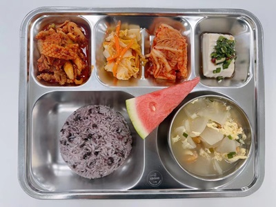 메뉴: 흑미밥/ 황태무국/ 오삼불고기/ 양념연두부/ 알배추무침/ 김치/ 후식