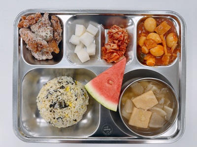 메뉴: 김자반비빔밥/ 어묵탕/ 뿌링클순살치킨/ 떡볶이/ 무피클/ 김치/ 후식