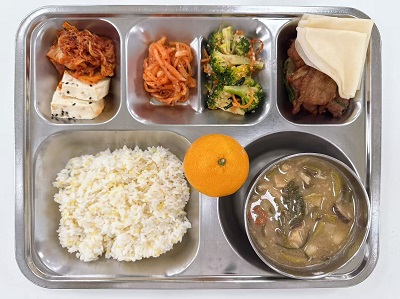 메뉴: 차조밥/감자들깨탕/훈제오리구이&전병/두부김치/브로콜리무침/무생채/계절과일