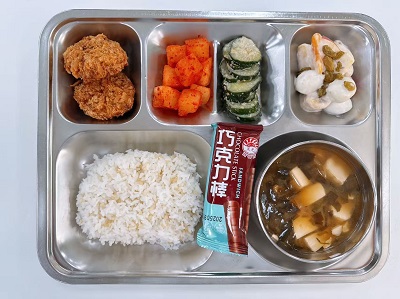메뉴:현미밥/미소된장국/멘치카츠/과일사라다/오이참깨무침/깍두기/계절과일