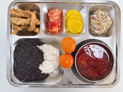 메뉴:짜장밥/짬뽕탕/수제탕수육/숙주맛살무침/단무지/배추김치/계절과일