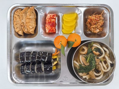 메뉴:김밥/모듬어묵우동/만두튀김/양배추무침/단무지/배추김치/계절과일