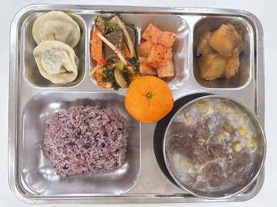 메뉴:흑미밥/설렁탕&소면/수제왕만두/도토리묵무침/간장감자조림/깍두기/계절과일