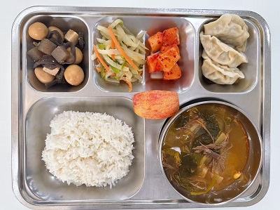 메뉴:찹쌀밥/소고기국밥/찐만두/메추리알곤약조림/감자채볶음/깍두기/계절과일